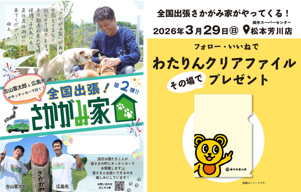 📢2026年3月29日(日) に綿半スーパーセンター 松本芳川店に全国出張さかがみ家がやってきます!