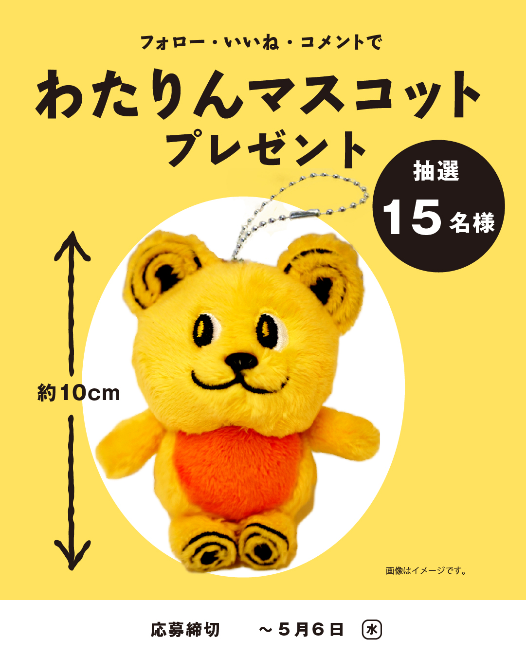 森からやってきた、わたりんの家の新キャラクター「わたりん」のキーホルダーが、抽選で15名様に当たります🎉